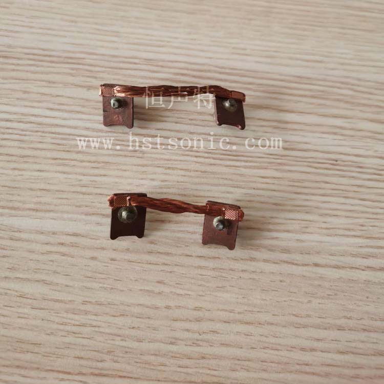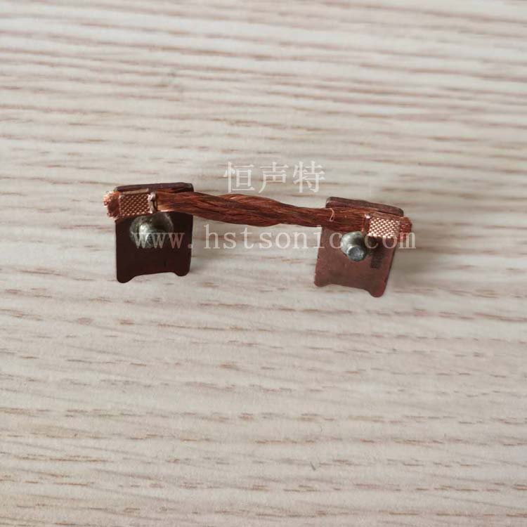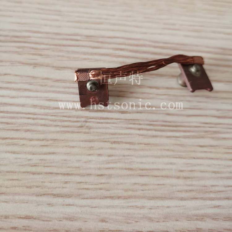 兩個(gè)銅編織線與銅端子超聲波金屬點(diǎn)焊機(jī)焊接樣品