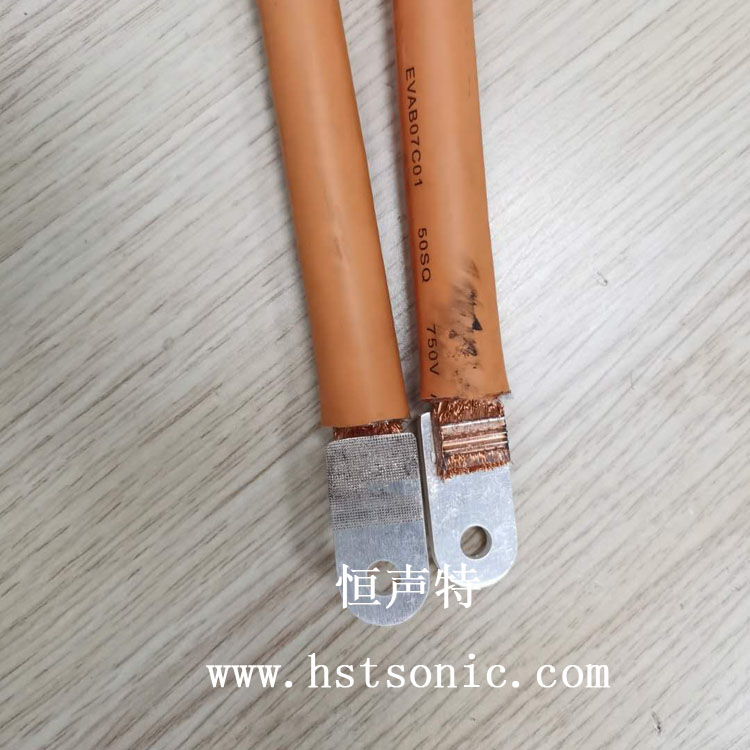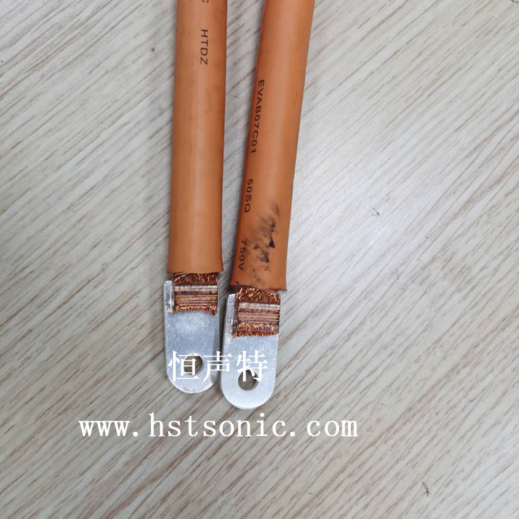 50平方銅線與端子焊接超聲波點(diǎn)焊機(jī)用于端子與銅線的壓合搭接焊接,電阻幾乎為零,焊點(diǎn)牢固。