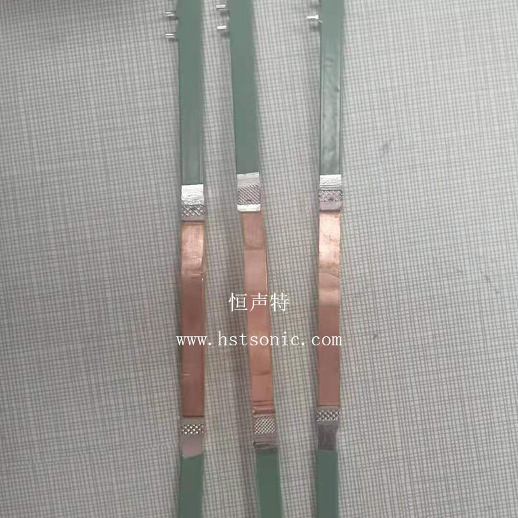 超聲波鋁片與銅片焊接超聲波點焊機(jī)操作簡單,將金屬片放在下工裝處,啟動按鈕,設(shè)備在設(shè)定好的參數(shù)下完成壓接。