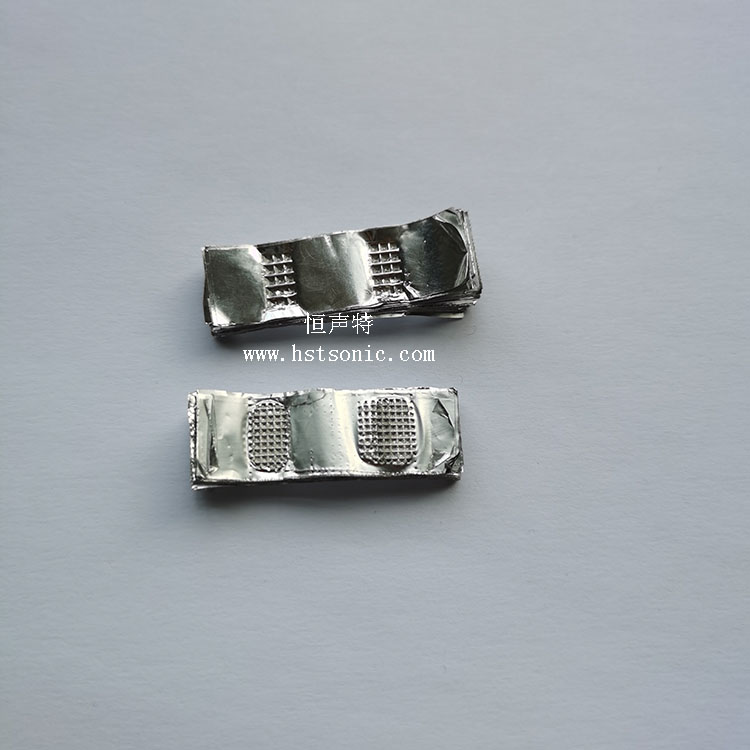 超聲波壓焊機操作簡單,將金屬片放在下工裝處,啟動按鈕,設(shè)備在設(shè)定好的參數(shù)下完成壓接。