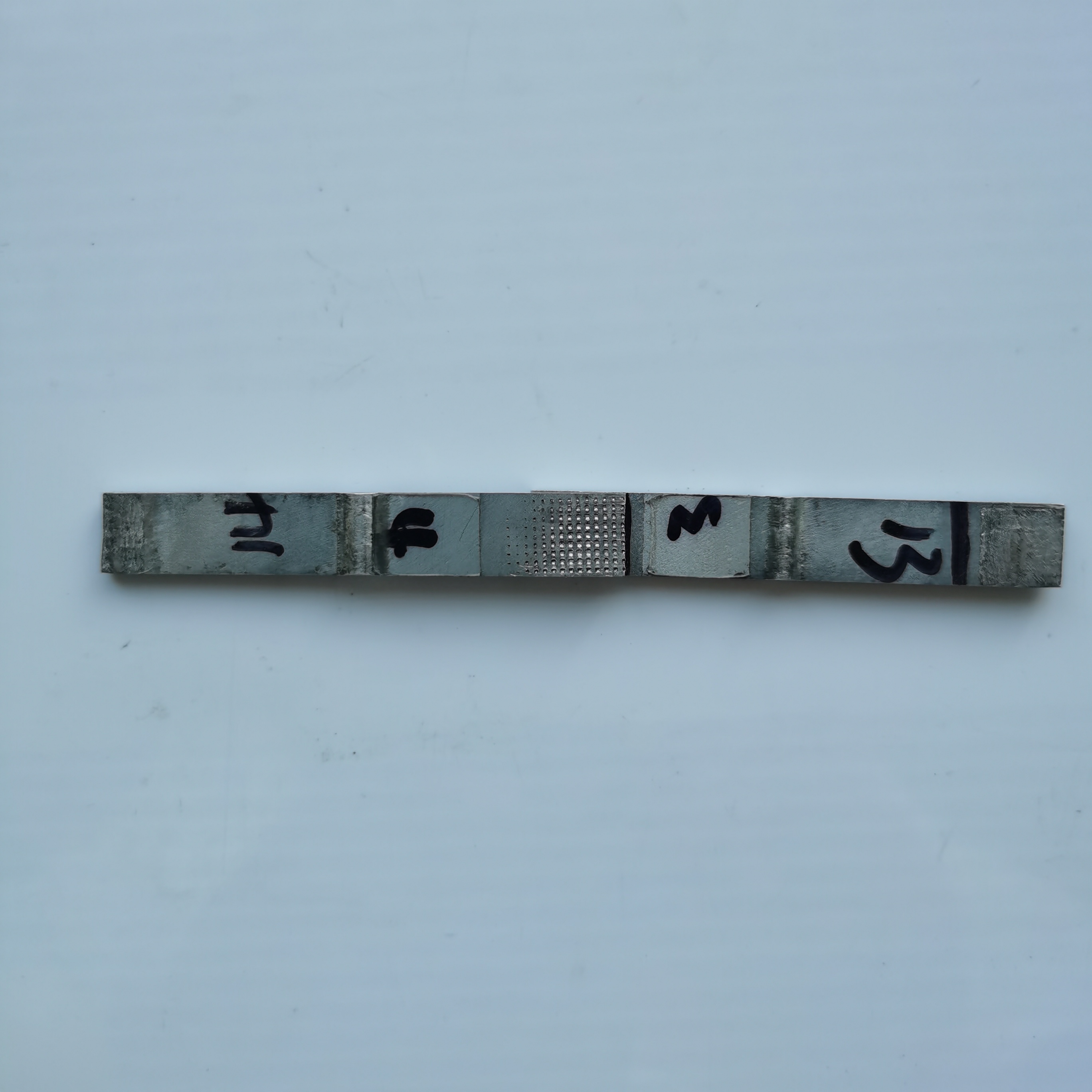 0.75mm厚鋁片搭接超聲波金屬點焊機焊接樣品如下: