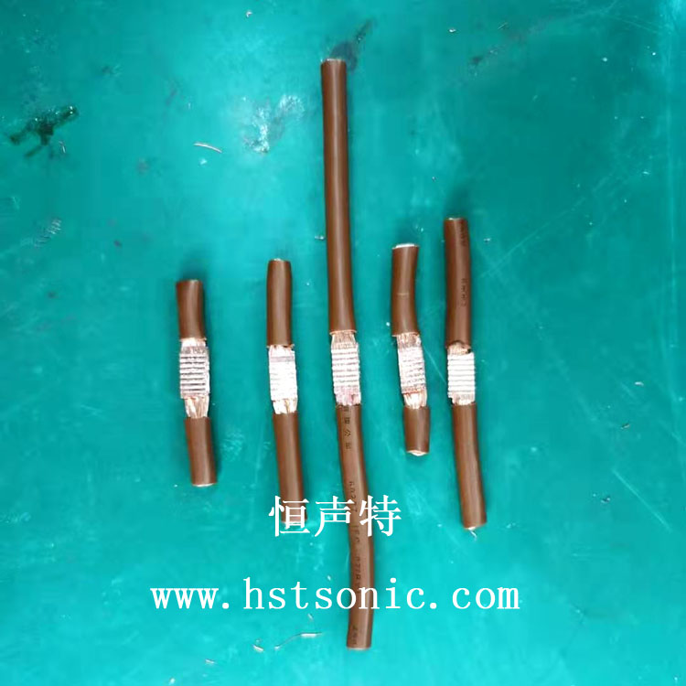 12平方汽車線束搭接超聲波金屬線束焊接機焊接設(shè)備是利用超聲波工藝焊接的,將兩根銅線搭接焊接,焊接強度牢固,適合用20K2000W超聲波線束焊接機焊接。